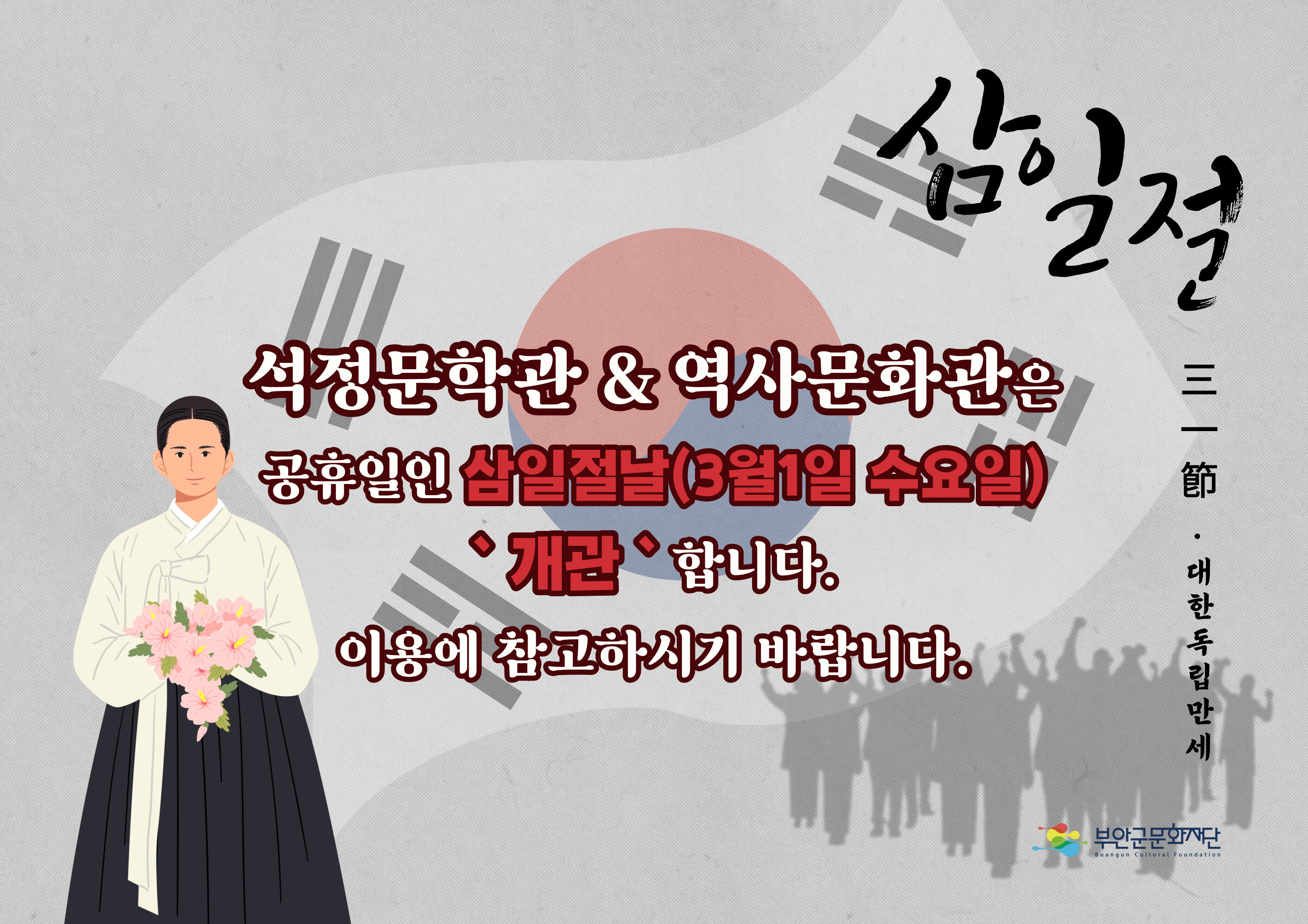 석정문학관 & 부안역사문화관 삼일절 관람안내