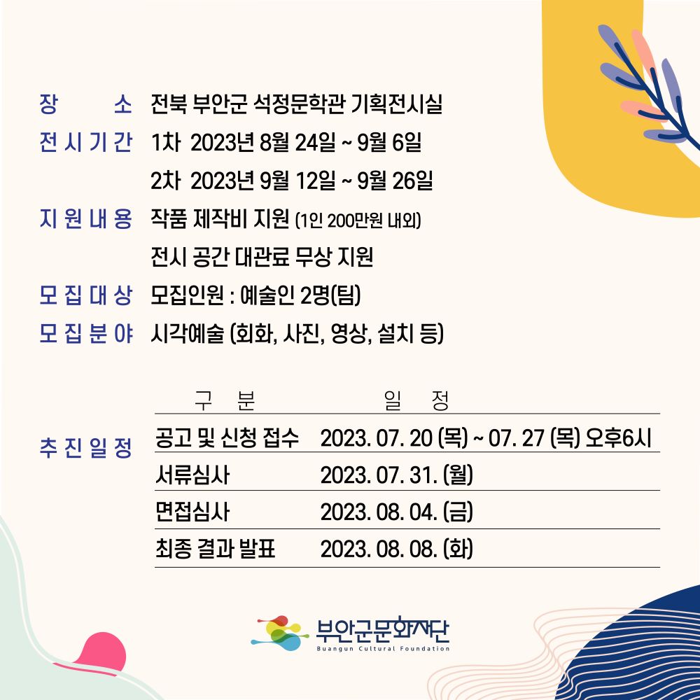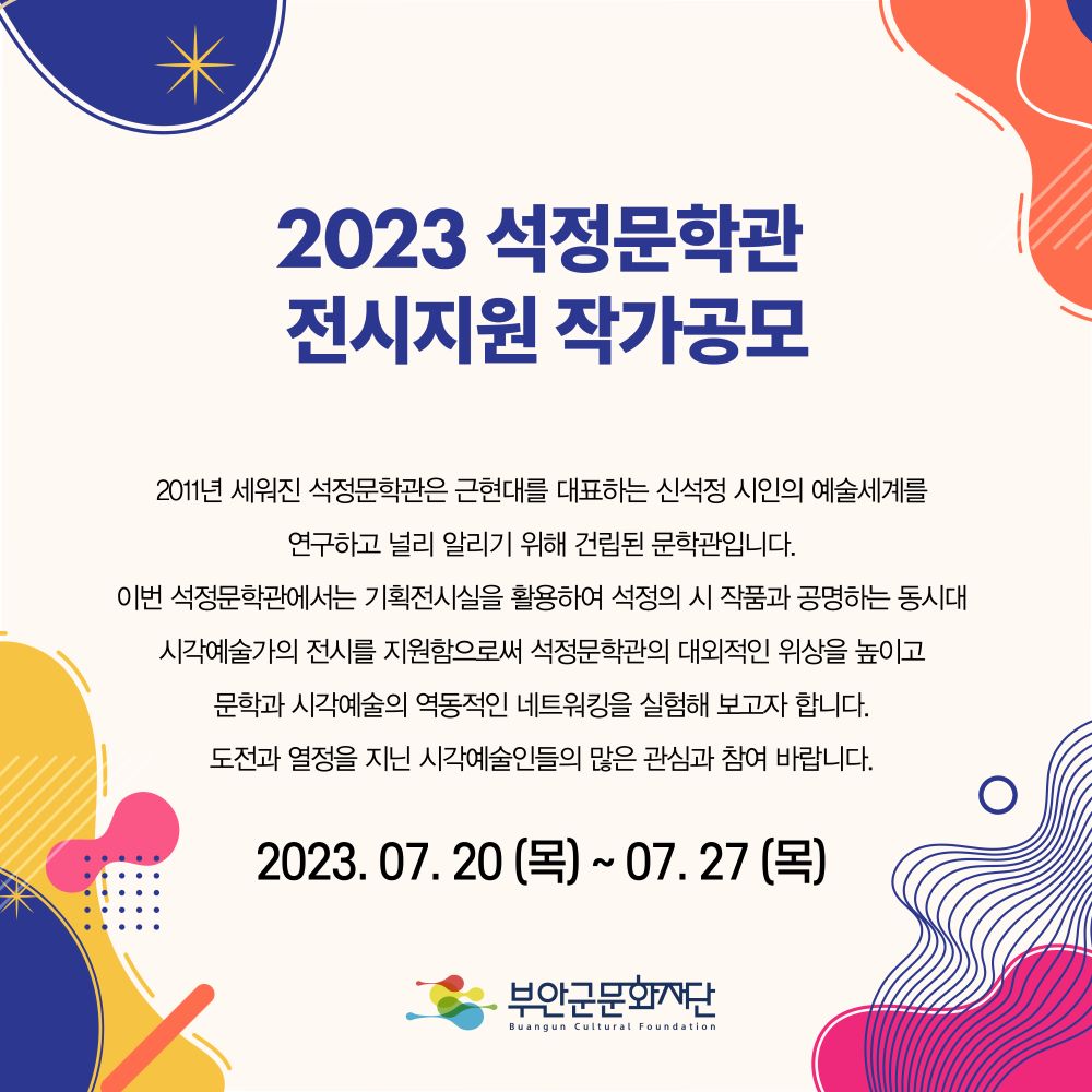 2023 석정문학관 기획전시실 전시지원 작가공모
