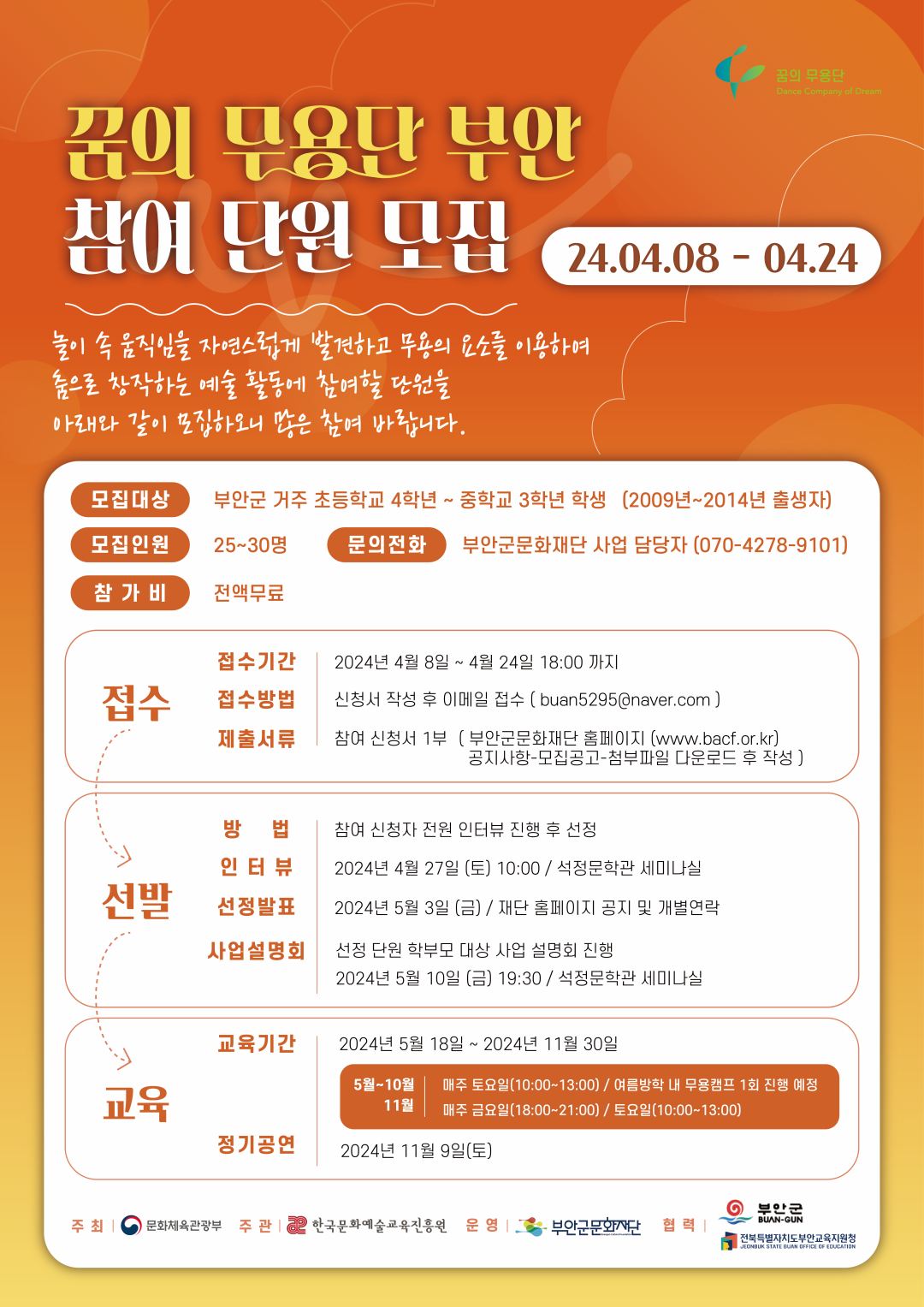 [모집공고] 2024 꿈의 무용단 '부안' 참여단원 모집