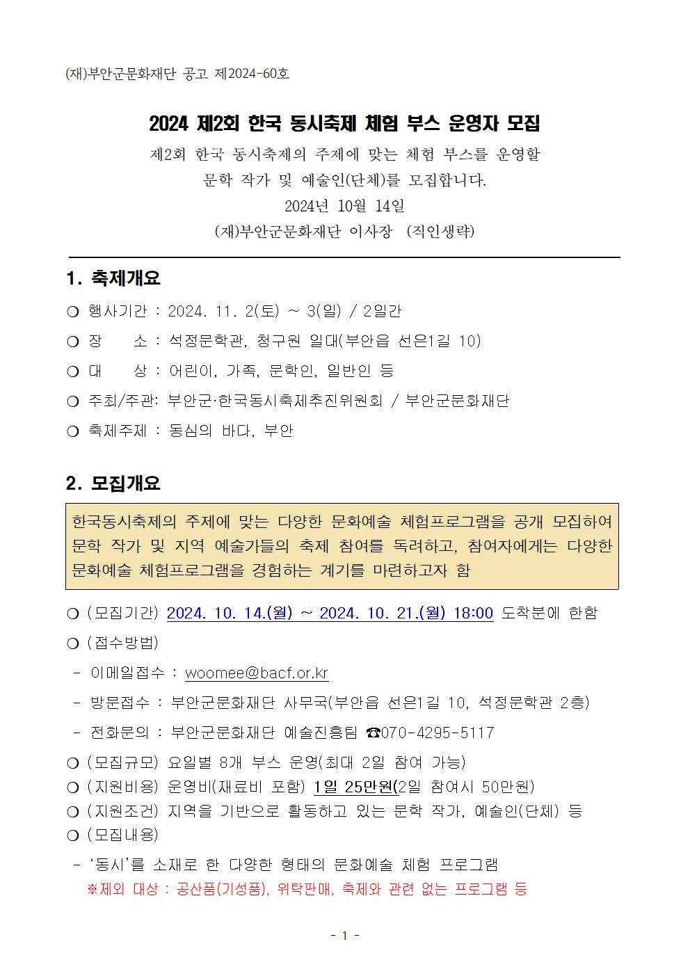 2024 제2회 한국 동시축제 체험 부스 운영자 모집공고.hwp