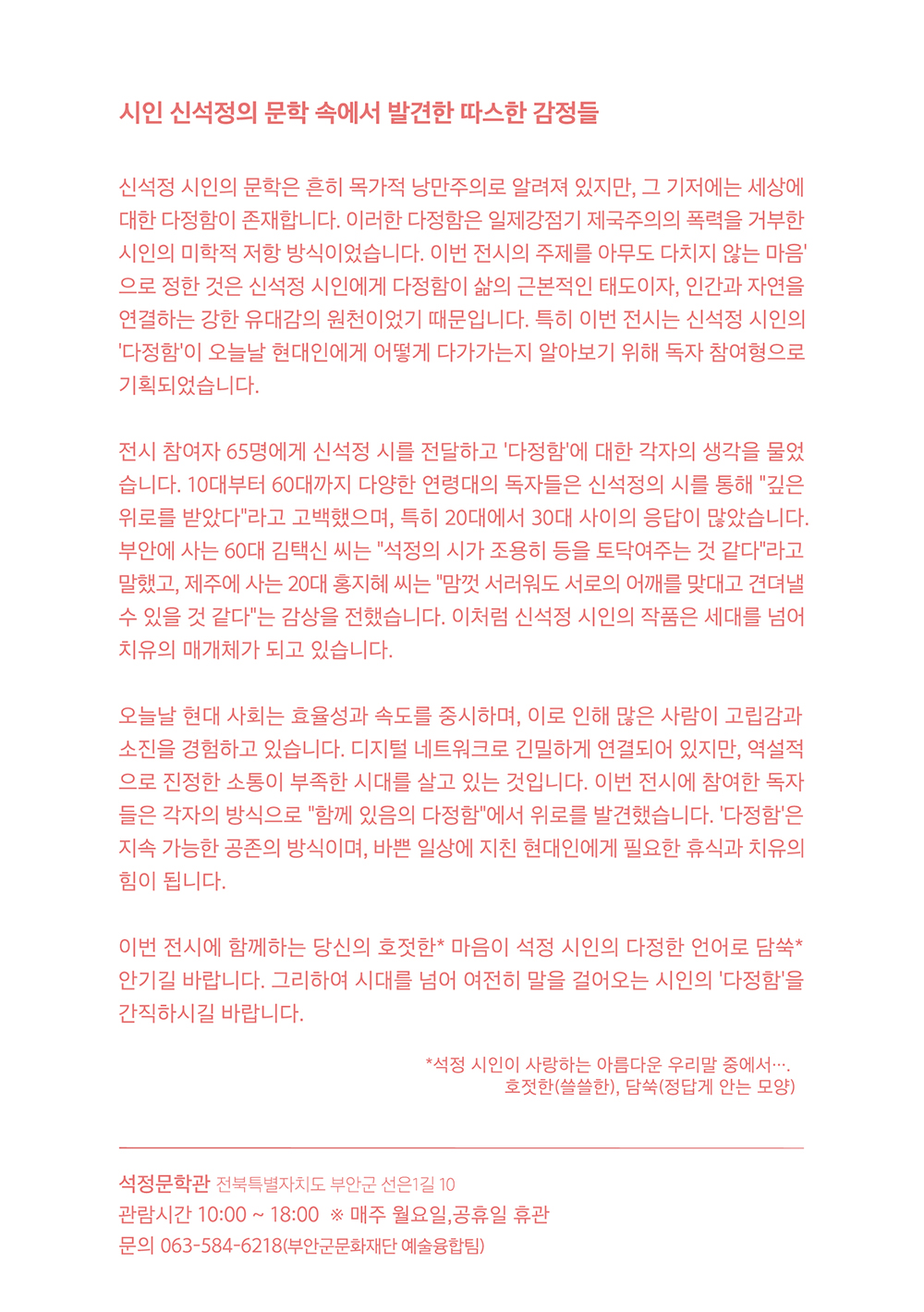 2025 석정문학관 기획전시「아무도 다치지 않는 마음」