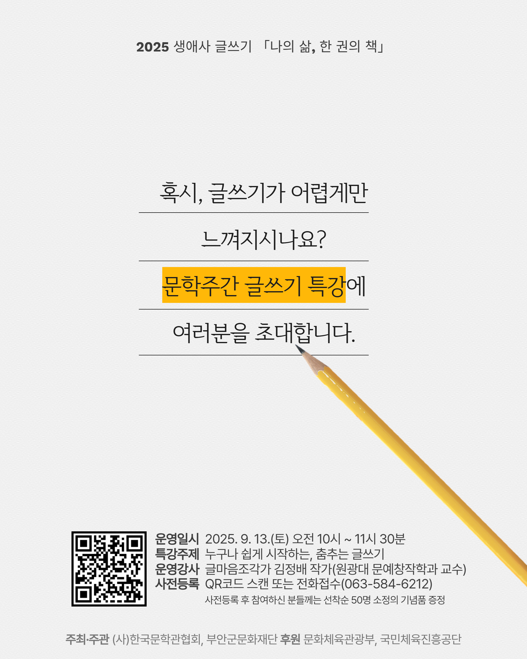 (사전등록) 2025 생애사 글쓰기 문학주간 특강 <춤추는 글쓰기>