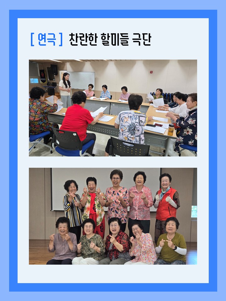 다듬이난타, 연극, 합창, 훌라댄스 4가지 생활예술 장르를 기반으로 프로그램 활동을 진행 후