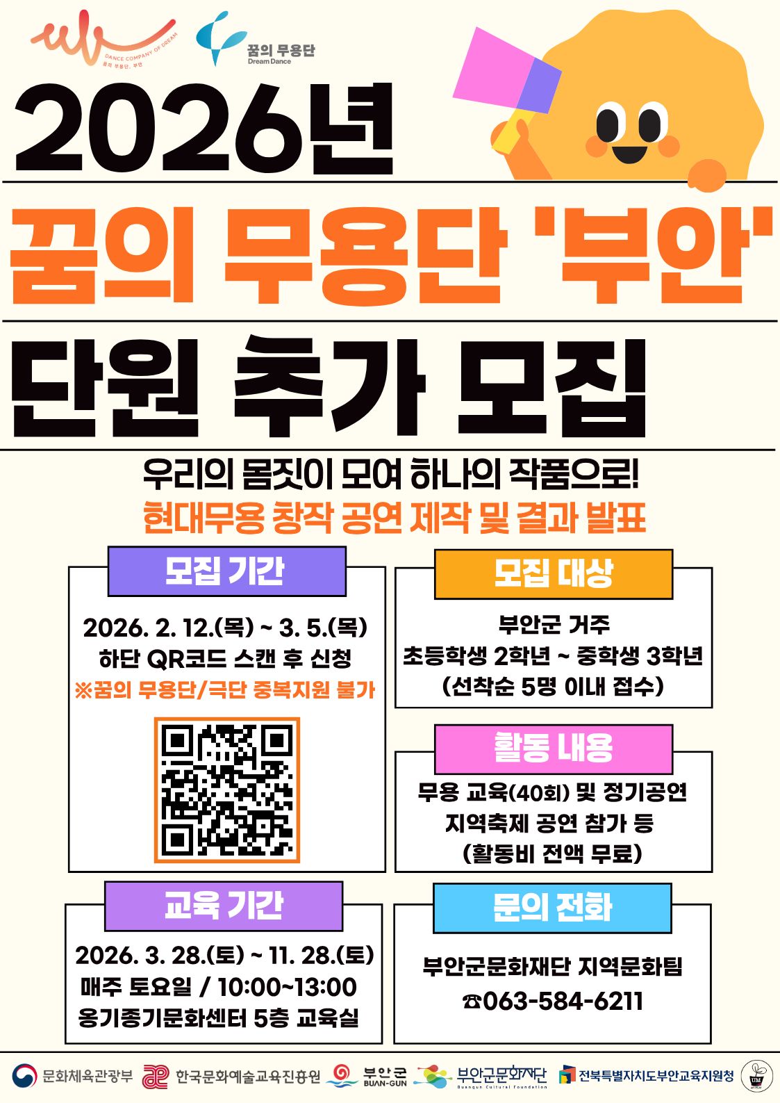 [모집공고] 2026 꿈의 무용단 '부안' 단원 추가 모집
