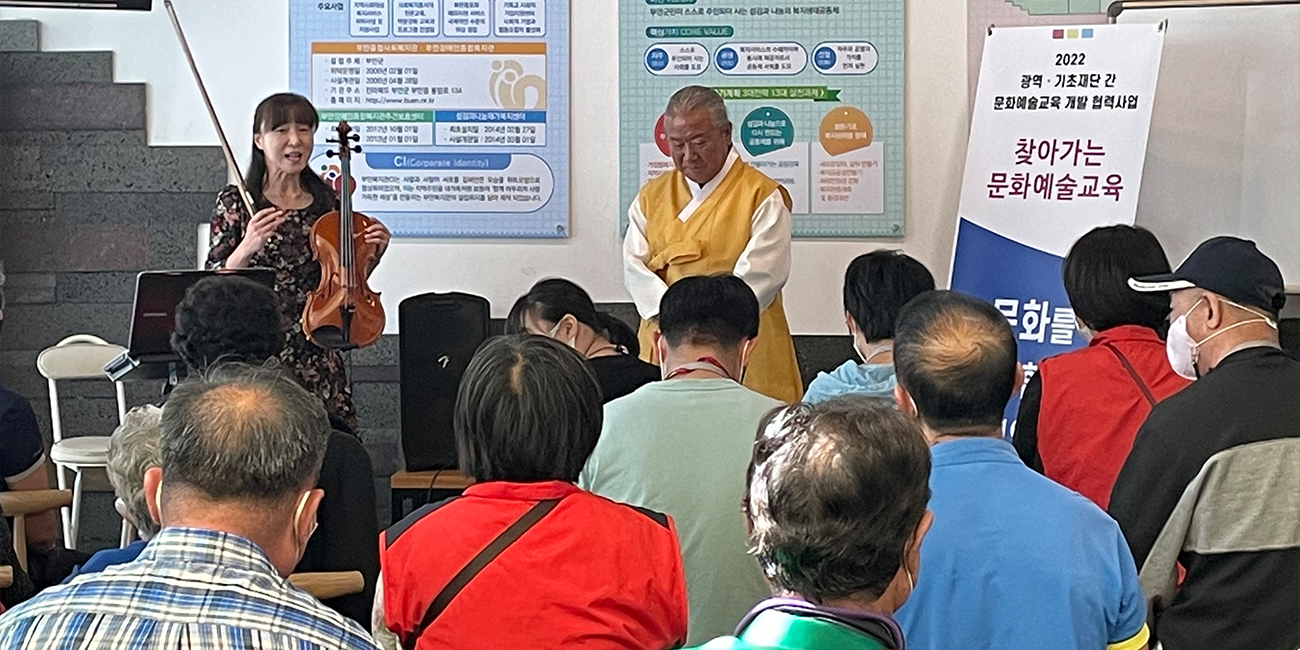 2022년 전북문화예술교육지원센터 광역-기초재단 협력사업: 찾아가는 문화예술교육:문화를배달합니다. 부앙~ 2022년 전체사업 보기 사업안내 사업안내 표 - 사업기간, 사업대상, 횟수, 사업비, 사업내용으로 구성 사업기간 2022. 6월 ~ 12월 사업대상 지역을 기반으로 한 관내 예술인 횟수 총 6회 사업비 14백만원 사업내용 광역-기초재단이 협력하여 지역 문화예술교육 분야 인력 양성 코로나19로 인한 교육프로그램 진행의 어려움 해소 기초 단위 문화적으로 소외된 지역주민 대상 문화예술교육 프로그램 운영 활성화 이전 슬라이드 1 / 3 다음 슬라이드