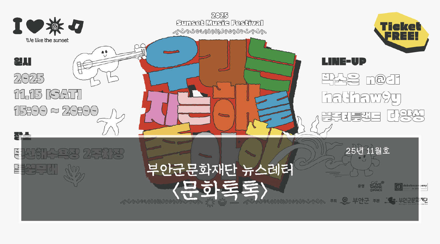 [행사안내] 2025 노을버스킹 우리는 지는 해를 좋아해 / [특별상영회 안내] 2025 작은영화관 기획전 시네마천국 / [출간안내] 2025 생애사 글쓰기 나의 삶, 한 권의 책 / [문화기자단] 하이라이트 인 부안 전시 관람기